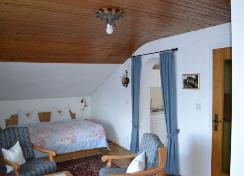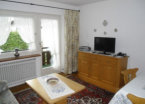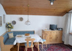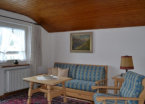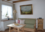 Gemütliche Bauernsitzecke im Wohnzimmer, erstklassige Polstermöbel. Balkon nach Süd/Südwesten.