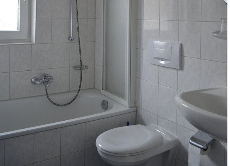 Dusche bzw Badewanne (Ferienwohnung “Waxenstein”)